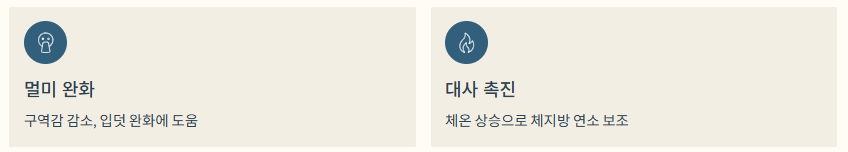 임산부의 입덧 완화, 차 멀미나 배 멀미 등 구역감을 줄이는 데 도움을 준다는 연구도 많습니다.