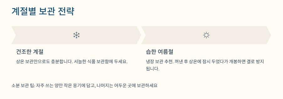 - 보관법: 밀폐 + 서늘하고 건조한 곳