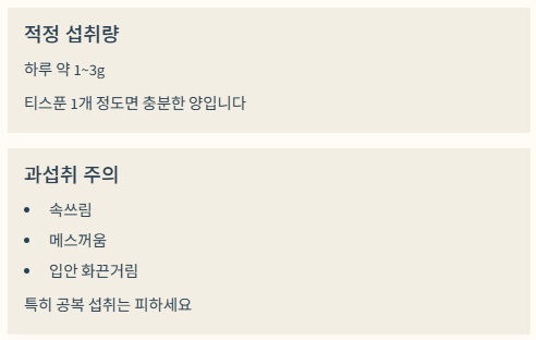 - 먹는 방법: 차, 요거트, 요리, 라떼 등 다양