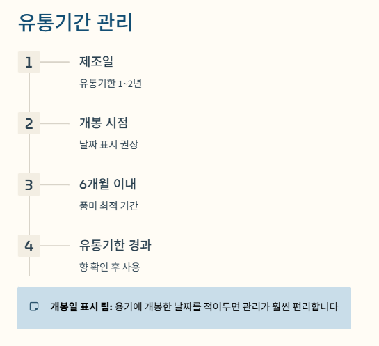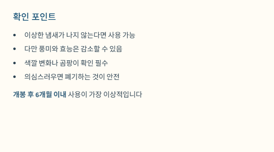 - 유통기간: 개봉 후 6개월 이내 사용 권장