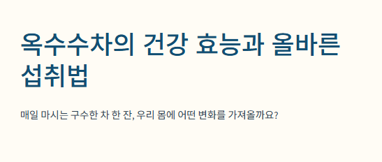 건강 음료를 선택하는 기준이 더 선명해졌다면, 오늘부터 옥수수차를 조금 더 균형 있게 즐겨보는 것도 좋겠습니다.