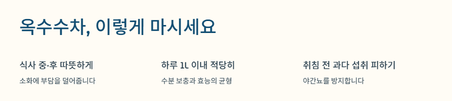옥수수차의 장점을 잘 살리려면 마시는 방식도 중요합니다.