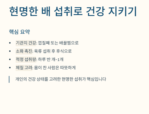 배의 효능을 극대화하고 부작용을 최소화하기 위해서는 섭취 방법에 대한 이해가 중요합니다.