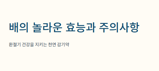 오늘은 배가 가진 놀라운 효능부터 섭취 시 반드시 주의해야 할 부작용과 현명한 섭취 방법에 대해 단계별로 자세히 알려드리겠습니다.