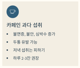 - 카페인 과다 섭취 주의: 녹차에도 카페인이 들어있어 과다 섭취 시 불면증, 불안, 심박수 증가, 두통 등을 유발할 수 있습니다. 특히 저녁에는 섭취를 피하고, 하루 2~3잔 정도만 마시는 것이 권장됩니다.