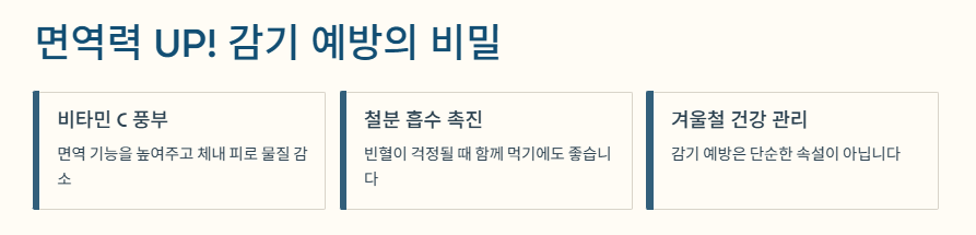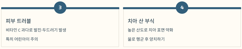 - 비타민 C: 면역력 강화, 피로 회복