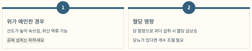 - 위가 약한 사람, 당 조절이 필요한 사람은 과다 섭취 주의