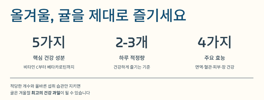 적당한 개수와 올바른 섭취 습관만 지키면 귤은 겨울철 최고의 건강 과일이 될 수 있습니다.