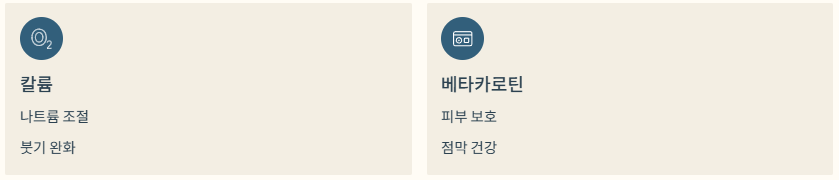 - 칼륨: 나트륨 조절 및 붓기 완화