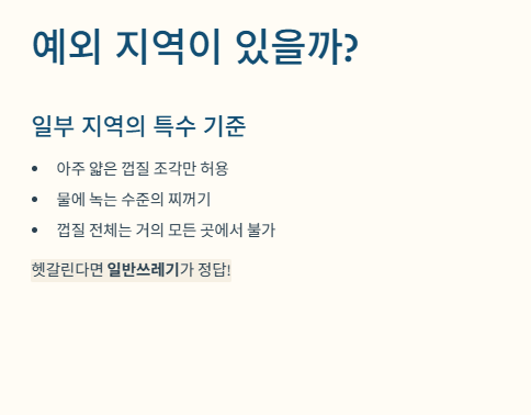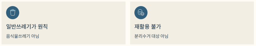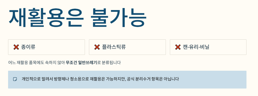 즉, 어느 재활용 품목에도 속하지 않기 때문에 무조건 일반쓰레기로 분류됩니다.