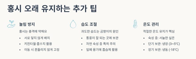 특히 자연 숙성 중이라면 통풍이 잘 되는 곳에 두는 것이 중요합니다.