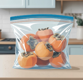 - 단단한 감을 봉지에 넣어 냉동합니다.