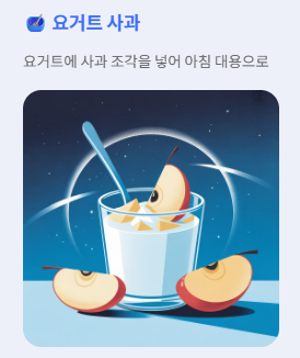 - 요거트에 사과 조각을 넣어 아침 대용으로