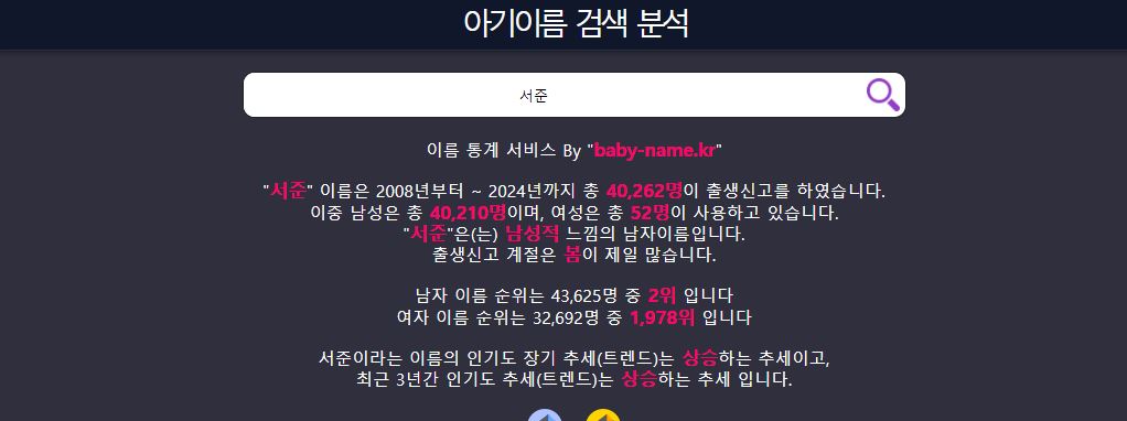 이름에 대한 각종 정보를 많이 제공하니 한번 활용해 보시면 이름 지을 때 많은 도움이 될 거 같습니다.