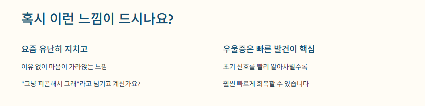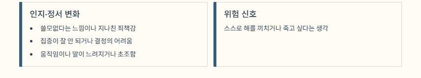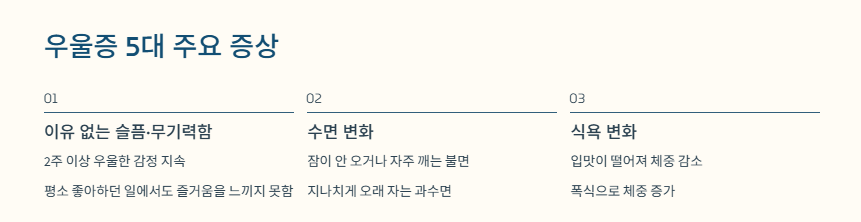 아래에서 우울증 대표 증상과 간단한 자가진단 체크리스트를 한눈에 정리해드립니다.