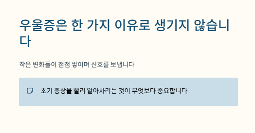 우울증은 초기 신호를 빨리 알아차릴수록 훨씬 빠르게 회복할 수 있습니다.