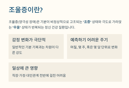 오늘은 조울증이 정확히 무엇인지, 어떤 증상이 나타나는지 쉽게 정리해드립니다.
