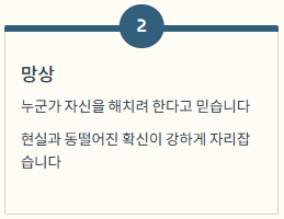실제로 존재하지 않는 목소리가 들리거나 누군가 지시하는 듯한 소리를 들을 수 있습니다.