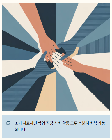 학업·직장 생활·사회 활동 모두 충분히 회복할 수 있습니다.