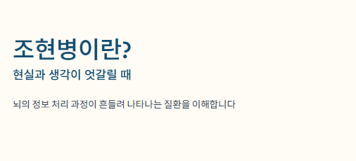 대표적인 질환이 바로 조현병(정신분열증으로 불리던 질환)입니다.