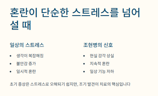 하지만 이런 혼란이 현실 감각을 잃을 정도로 강하게 나타난다면 단순한 스트레스가 아닐 수 있습니다.
