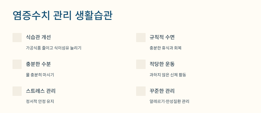 - 생활습관 개선이 염증 관리에 큰 역할을 함