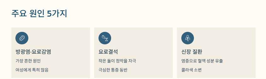 감염처럼 간단한 원인부터 신장 질환, 결석처럼 관리가 필요한 문제까지 다양하기 때문에
