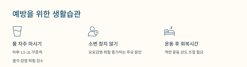 하루 1.5~2L 정도를 꾸준히 마시면 결석·감염 위험을 줄일 수 있습니다.