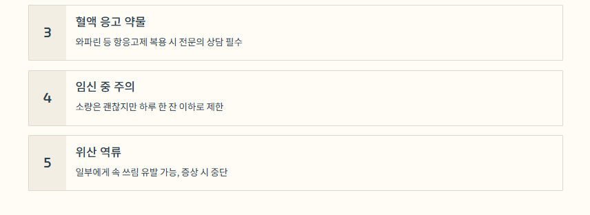 다만 알레르기나 특정 질환이 있는 경우에는 조심해야 하며, 과다 섭취는 오히려 불편을 유발할 수 있습니다.