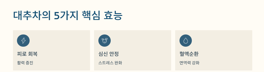 오늘은 대추차가 우리 몸에 어떤 효능을 주는지, 그리고 어떤 사람에게 특히 좋을지 단계별로 정리해드립니다.