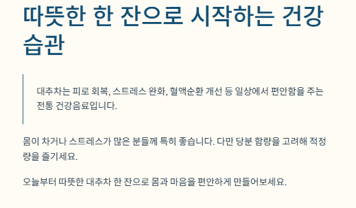 하지만 “대추차가 정말 건강에 어떤 도움이 될까?” 하고 궁금해하는 분들도 많습니다.