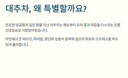 몸이 지치고 마음도 가라앉는 날, 따뜻한 대추차 한 잔이 생각나지 않으신가요?