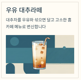 대추차는 단순히 마시는 데 그치지 않고, 조합에 따라 다양한 버전으로 변신합니다.