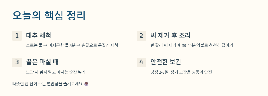 오늘 알려드린 방법으로 더 깊고 풍미 있는 대추차를 즐겨보세요.