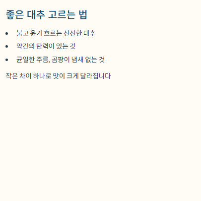 - 색이 붉고 윤기가 흐르면 신선한 대추입니다.