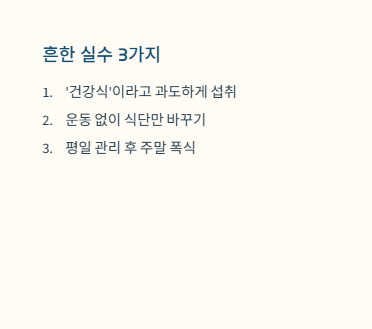 평일에 관리해도 주말 폭식이 반복되면 금방 다시 지방이 쌓입니다.