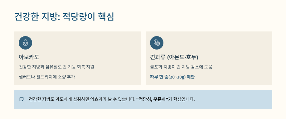 운동과 체중 관리도 중요하지만, 실제로 식단 선택만 잘해도 지방간 개선 속도가 크게 달라집니다.