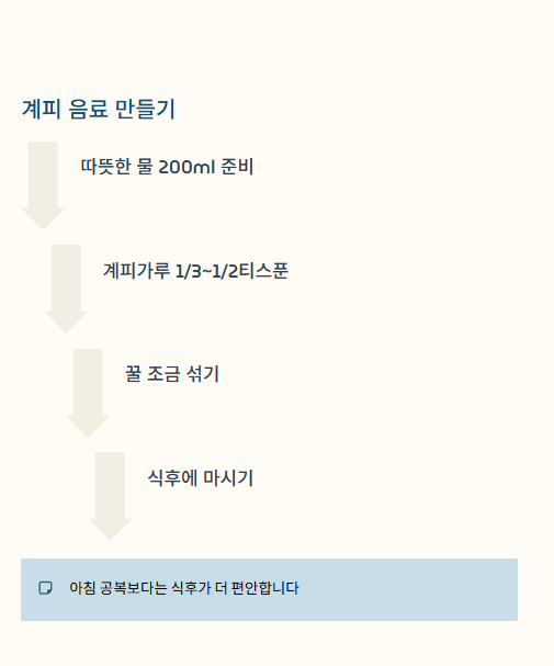 - 따뜻한 물 200ml + 계피가루 1/3~1/2티스푼