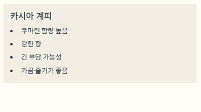 - 커피 향과 잘 어울려 향이 풍부해짐