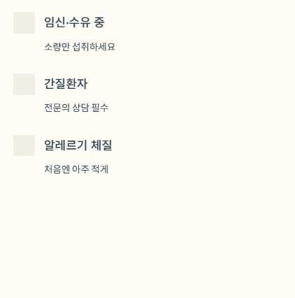 - 임산부, 간질환자, 항응고제 복용자는 주의 필요