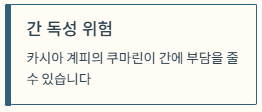 - 쿠마린 함량이 높아 과다 섭취 시 간에 부담