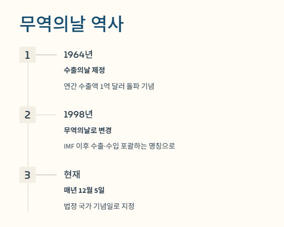 이날은 한국 경제를 지탱해 온 모든 무역인의 노력을 공식적으로 인정하는 특별한 날입니다.