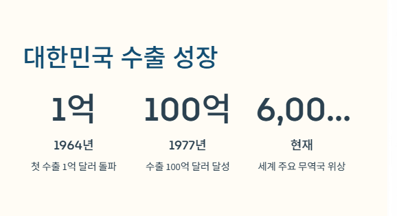 당시 한국은 산업 기반이 거의 없는 상황이었기에 이 수치는 국가적으로 큰 의미가 있었고,