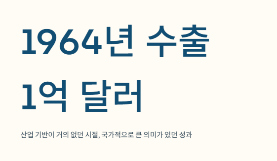 1964년 우리나라의 연간 수출액이 처음으로 1억 달러를 넘겼습니다.