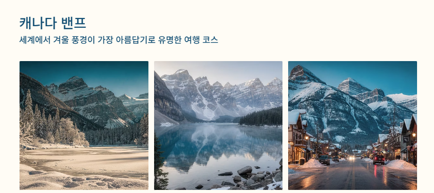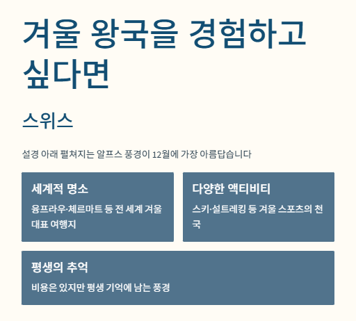 - 설경 여행 → 캐나다, 스위스, 북유럽