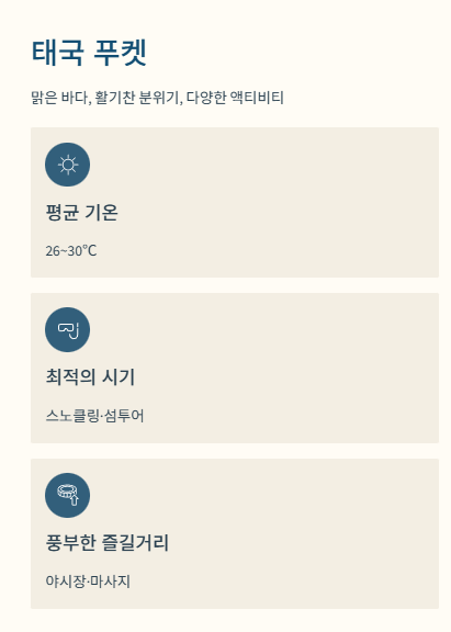 - 다낭·푸켓·세부는 따뜻한 휴식이 필요할 때.