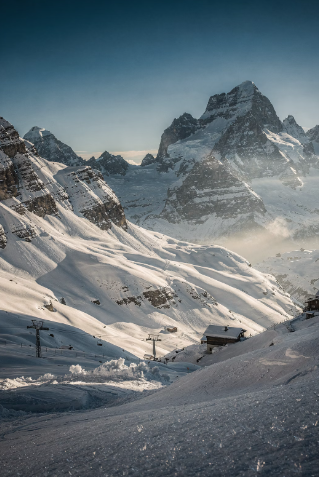 설경 아래 펼쳐지는 알프스 풍경이 12월에 가장 아름답습니다.