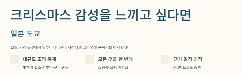 - 도쿄·오사카·유럽은 연말 분위기 즐기기 좋다.