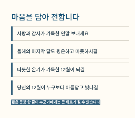 오늘 정리한 12월 인사말 30가지를 상황에 맞게 활용해보세요.