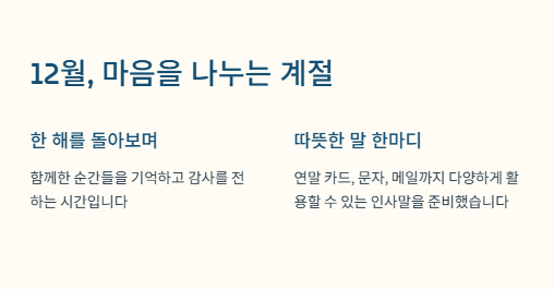 12월은 한 해를 돌아보고, 고마움을 전하고, 희망을 나누는 시기입니다.
